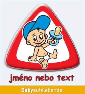 Der 3D-Aufkleber Kleinkind mit Schnuller wird in Farbe gedruckt, auf seine Oberfläche wird eine transparente 3D-Schicht aufgebracht. Fügen Sie den Namen Ihres Kindes oder einen Text mit bis zu 30 Zeichen auf dem Aufkleber hinzu beliebigen Farbe aus dem Sortiment hinzu. Die Abmessungen sind festgelegt, die Mindestgröße beträgt 8,8×8 cm, Katalognummer 9328. 3D Autoaufkleber mit Namen - Kleinkind mit Schnuller kann andere Fahrer vor einem Kind im Auto warnen.