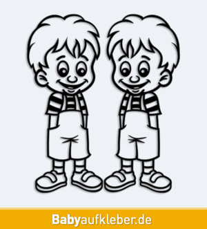 Einen Autoaufkleber Brüder in kurzen Hosen bieten wir in 24 Farben an und ergänzen ihn mit dem Namen eines Kindes oder mit einem Text in einer Länge von bis zu 30 Zeichen. Die Mindestmaße eines Aufklebers sind 8.6×10 cm, Katalognummer 22623. Autoaufkleber mit Kindernamen - Brüder in kurzen Hosen Ein Autoaufkleber mit dem Namen eines Kindes - Kopf eines Jungen weist die anderen Fahrer auf ein befördertes Kind im Auto hin.