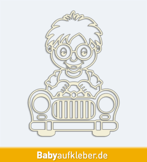 Einen Autoaufkleber Junge hinter dem Steuer bieten wir in 24 Farben an und ergänzen ihn mit dem Namen eines Kindes oder mit einem Text in einer Länge von bis zu 30 Zeichen. Die Mindestmaße eines Aufklebers sind 7.2×10 cm, Katalognummer 22147. Autoaufkleber mit Kindernamen - Junge hinter dem Steuer Ein Autoaufkleber mit dem Namen eines Kindes - Kopf eines Jungen weist die anderen Fahrer auf ein befördertes Kind im Auto hin.