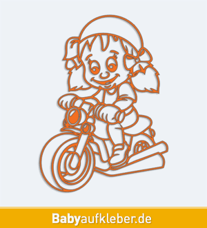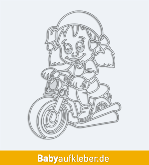 Einen Autoaufkleber Kleines Mädchen auf einem Motorrad bieten wir in 24 Farben an und ergänzen ihn mit dem Namen eines Kindes oder mit einem Text in einer Länge von bis zu 30 Zeichen. Die Mindestmaße eines Aufklebers sind 7.2×10 cm, Katalognummer 22559. Autoaufkleber mit Kindernamen - Kleines Mädchen auf einem Motorrad Ein Autoaufkleber mit dem Namen eines Kindes - Kopf eines Jungen weist die anderen Fahrer auf ein befördertes Kind im Auto hin.