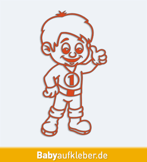 Einen Autoaufkleber Gewinner bieten wir in 24 Farben an und ergänzen ihn mit dem Namen eines Kindes oder mit einem Text in einer Länge von bis zu 30 Zeichen. Die Mindestmaße eines Aufklebers sind 5.2×10 cm, Katalognummer 22354. Autoaufkleber mit Namen - Gewinner Ein Autoaufkleber mit dem Namen eines Kindes - Kopf eines Jungen weist die anderen Fahrer auf ein befördertes Kind im Auto hin.