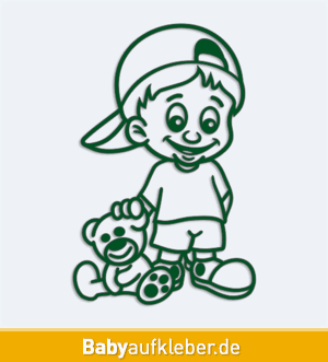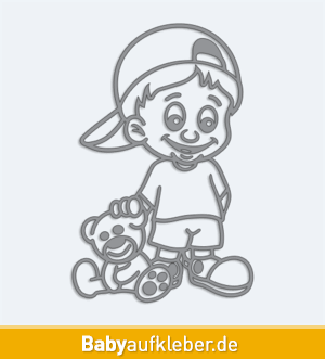 Einen Autoaufkleber Junge mit Stofftier bieten wir in 24 Farben an und ergänzen ihn mit dem Namen eines Kindes oder mit einem Text in einer Länge von bis zu 30 Zeichen. Die Mindestmaße eines Aufklebers sind 6.4×10 cm, Katalognummer 22493. Autoaufkleber mit Namen - Junge mit Stofftier Ein Autoaufkleber mit dem Namen eines Kindes - Kopf eines Jungen weist die anderen Fahrer auf ein befördertes Kind im Auto hin.