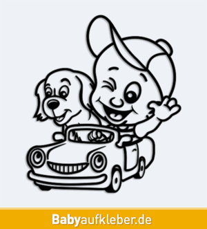 Einen Autoaufkleber Junge und Hund in einem Auto bieten wir in 24 Farben an und ergänzen ihn mit dem Namen eines Kindes oder mit einem Text in einer Länge von bis zu 30 Zeichen. Die Mindestmaße eines Aufklebers sind 8.7×10 cm, Katalognummer 22486. Autoaufkleber mit Namen - Junge und Hund in einem Auto Ein Autoaufkleber mit dem Namen eines Kindes - Kopf eines Jungen weist die anderen Fahrer auf ein befördertes Kind im Auto hin.