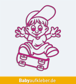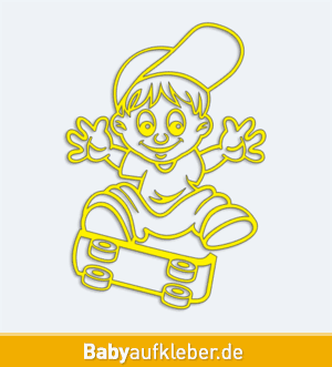 Einen Autoaufkleber Kleiner Skateboarder bieten wir in 24 Farben an und ergänzen ihn mit dem Namen eines Kindes oder mit einem Text in einer Länge von bis zu 30 Zeichen. Die Mindestmaße eines Aufklebers sind 7×10 cm, Katalognummer 22590. Autoaufkleber mit Namen - Kleiner Skateboarder Ein Autoaufkleber mit dem Namen eines Kindes - Kopf eines Jungen weist die anderen Fahrer auf ein befördertes Kind im Auto hin.
