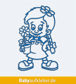 Einen Autoaufkleber Mädchen mit einer Blume bieten wir in 24 Farben an und ergänzen ihn mit dem Namen eines Kindes oder mit einem Text in einer Länge von bis zu 30 Zeichen. Die Mindestmaße eines Aufklebers sind 6.1×10 cm, Katalognummer 22402. Autoaufkleber mit Namen - Mädchen mit einer Blume Ein Autoaufkleber mit dem Namen eines Kindes - Kopf eines Jungen weist die anderen Fahrer auf ein befördertes Kind im Auto hin.