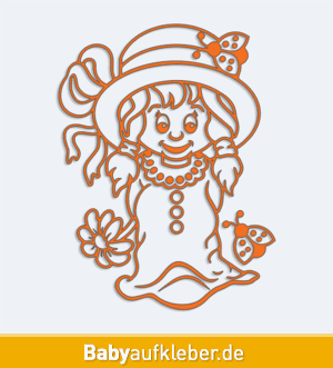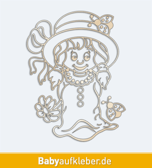 Legen Sie den Aufkleber Mädchen mit Hut auf eine ebene Fläche mit dem Trägerpapier nach unten.